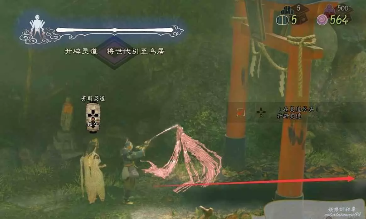 開闢靈道後,世代會自動往前走,直到抵達鳥居淨化村子