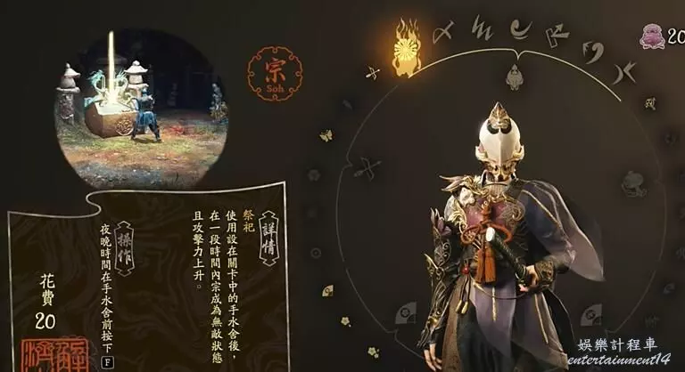 宗的強化優推位於上方的祭祀,效果為是用關卡重點水手舍。