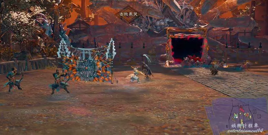 小怪掃除後,過場動畫,結束後繼續殺怪,周圍會有村民協助,但會劇情殺