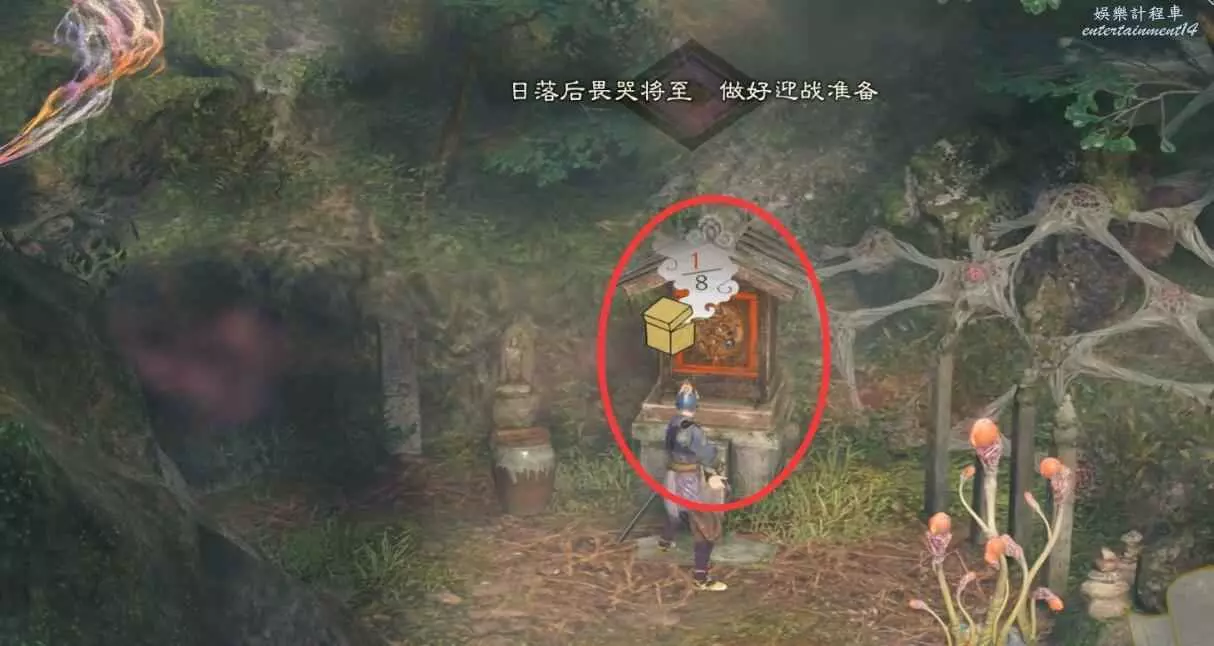 晚上怪物出來,從鳥居大門進入,靠近大門紅色區域會掉血
