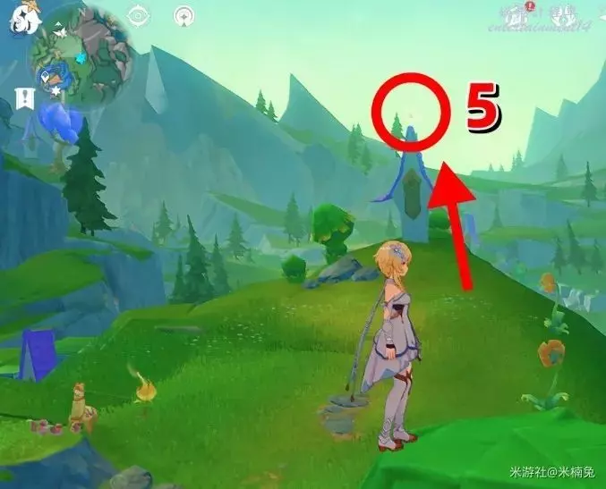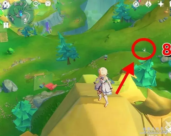 拿完將視角轉向【西方向】小地圖的【左邊】,爬上面前的山崖