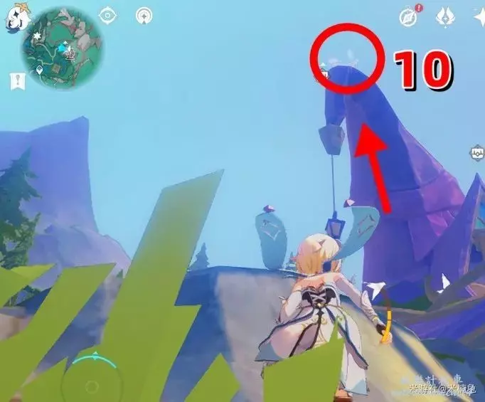 接著抬頭,爬上【南方向】小地圖的【下方】,最高的山頂上