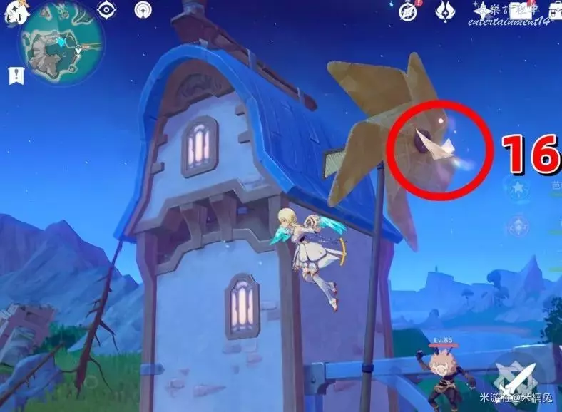 視角轉向【西方向】小地圖的【左邊】,在房屋前的風車上有1個