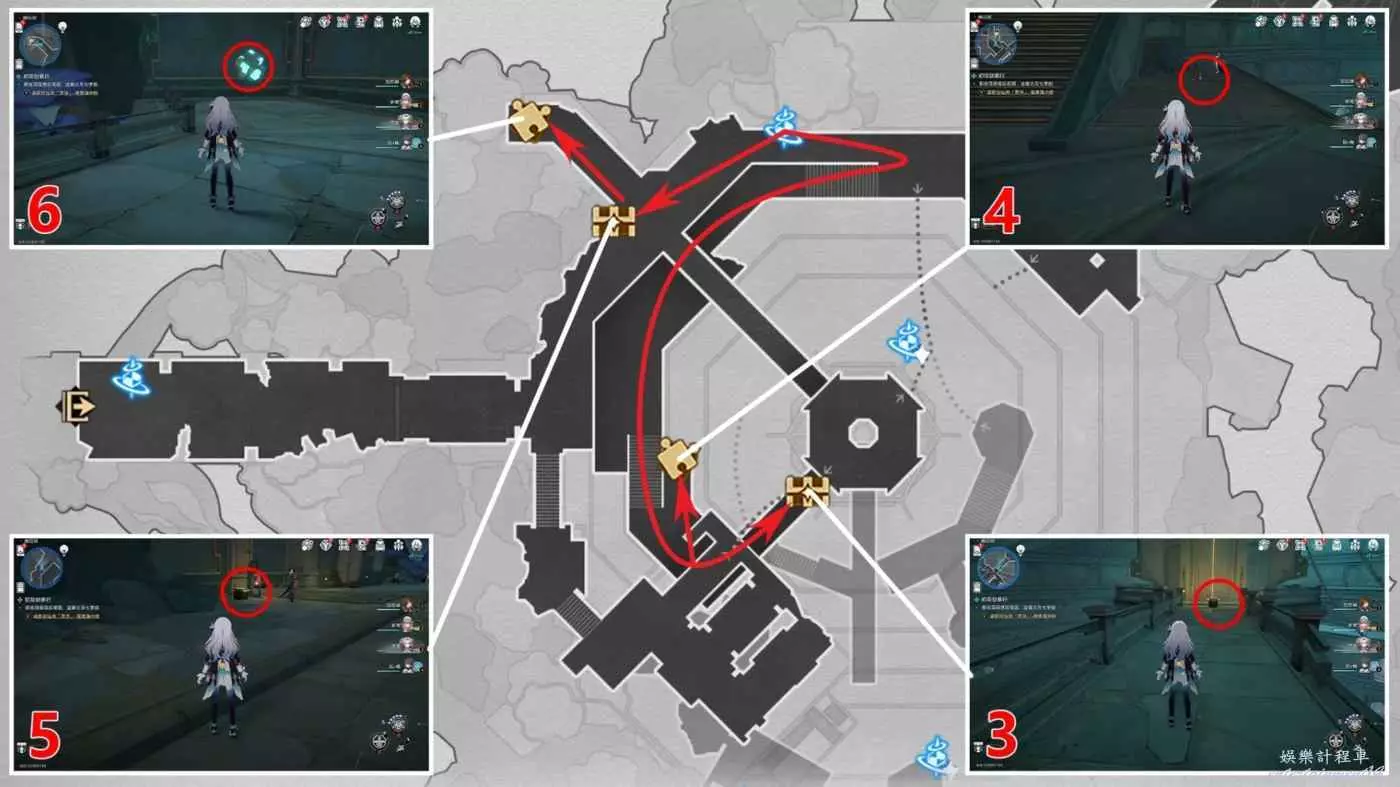 (4)機巧鳥解密,先將右側的按鈕向左旋轉2次,再將上方的按鈕向左旋轉2次,之後跟隨機巧鳥來到終點