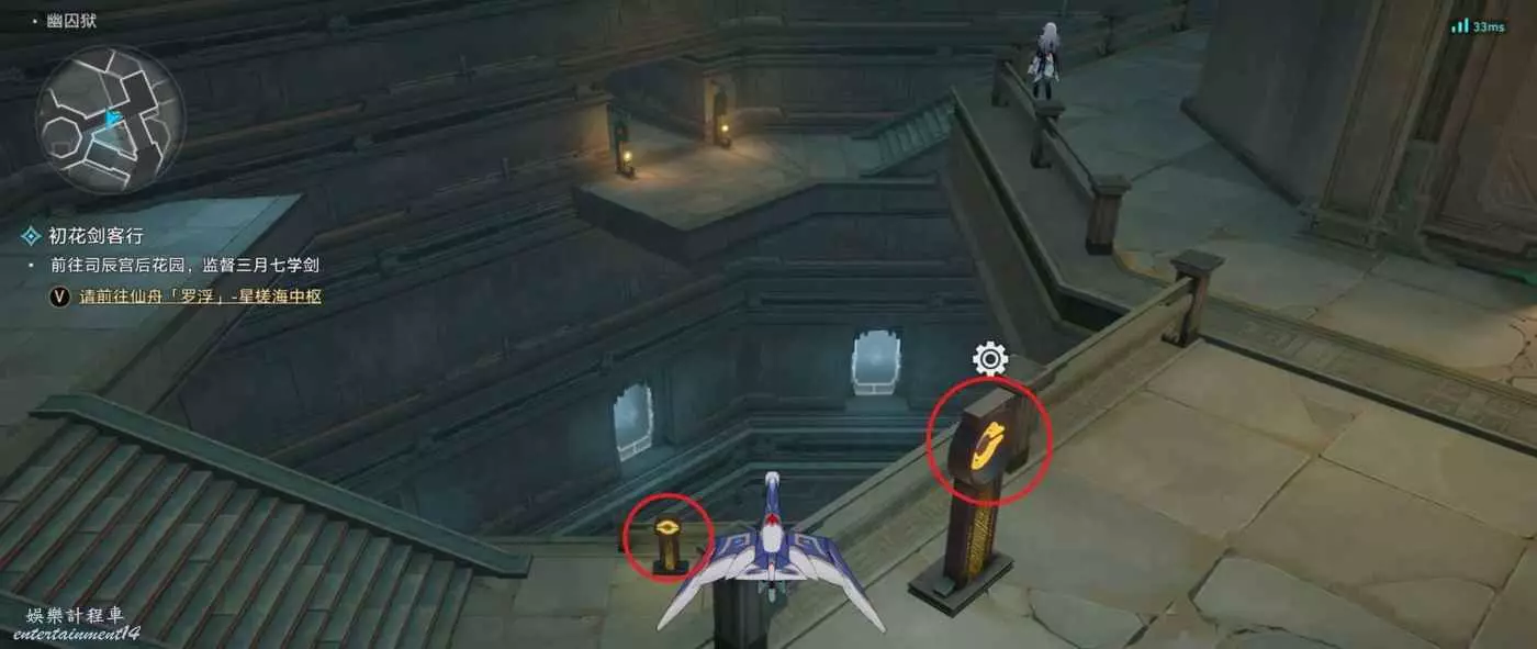 (30)來到標記位置後,與機巧鳥對話,變成機巧鳥向左上方飛,寶箱就在柱子上