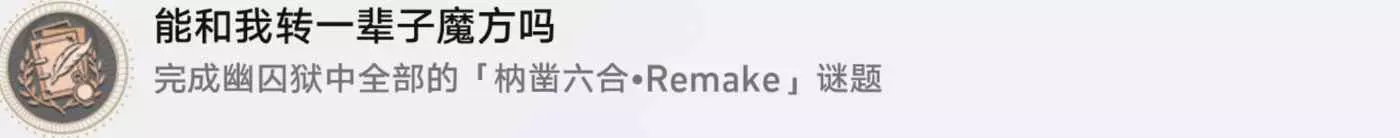 再次完成6個魔方解密後,返回幽囚獄-1層,在西橋處提交6個魔方戰令,還能獲得成就《能和我轉一輩子魔方嗎》
