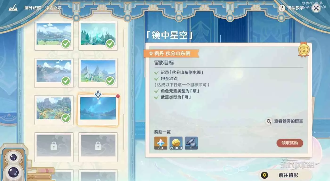 第8關的位置在楓丹秋分山東側,傳送到附近地上錨點,前往留影位置即可。