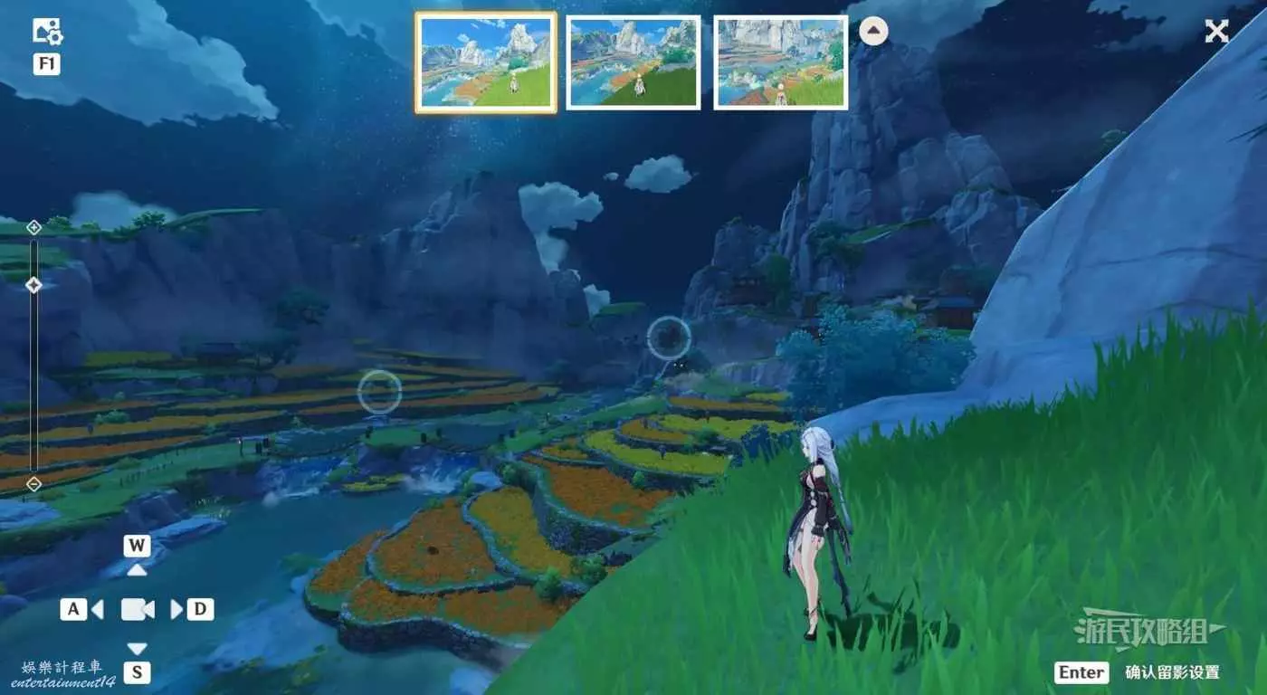 角色選擇甘雨/申鶴/重雲/七七等(滿足任意一個條件即可:選擇任意冰元素角色,選擇任意璃月角色),將所有圓點保持在鏡頭內,可以直接點擊上方三種角度,然後點擊右下角保存留影設置。