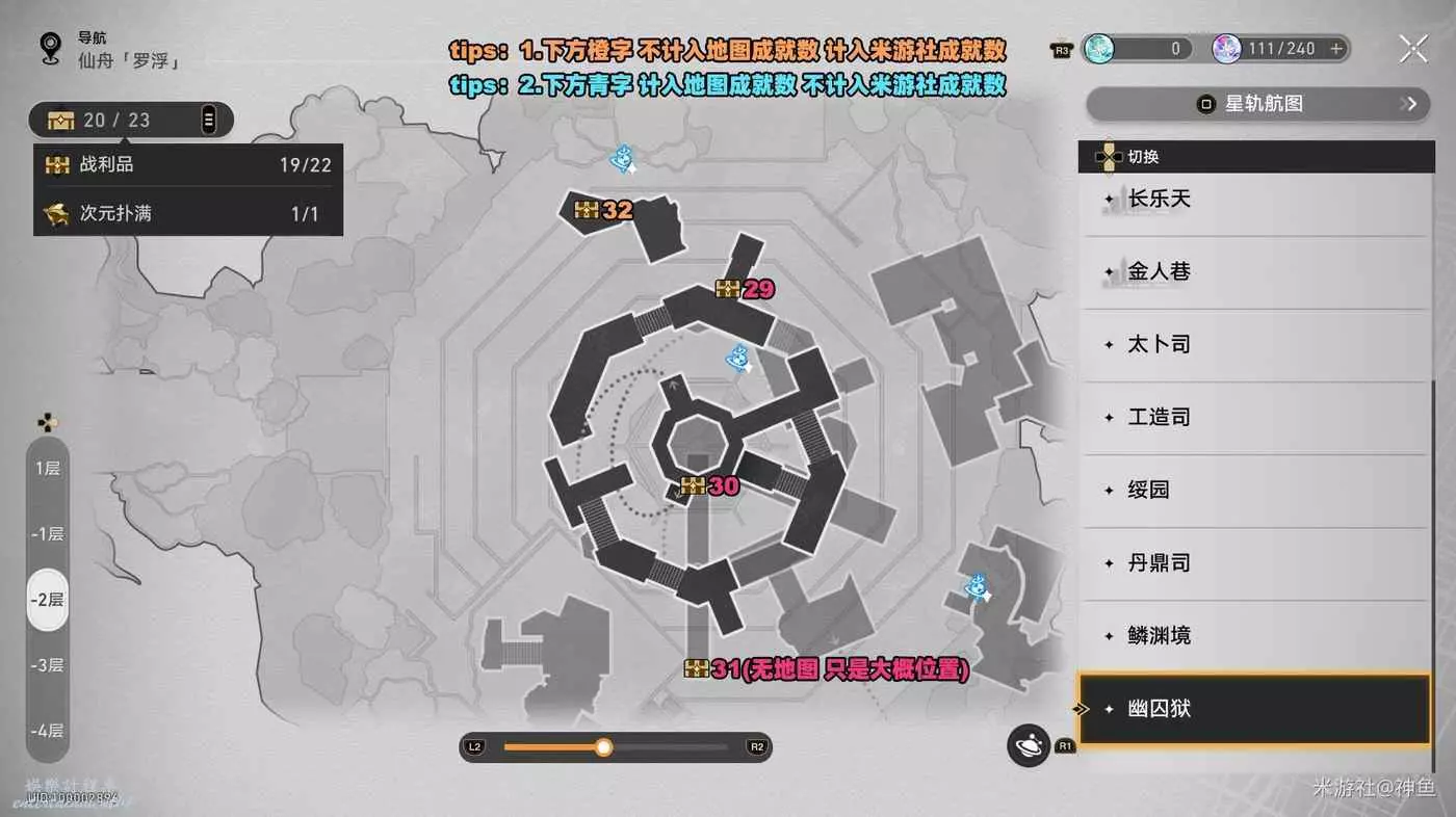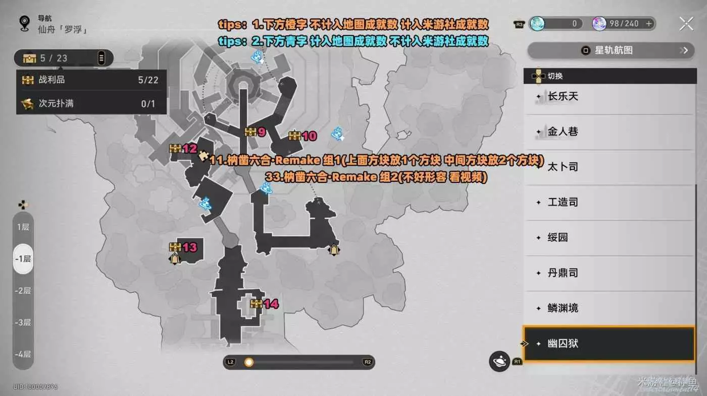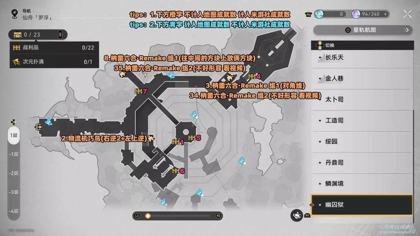 『仙舟「羅浮」』新地圖『幽囚獄』共有「37個戰利品」+「1個次元撲滿」。