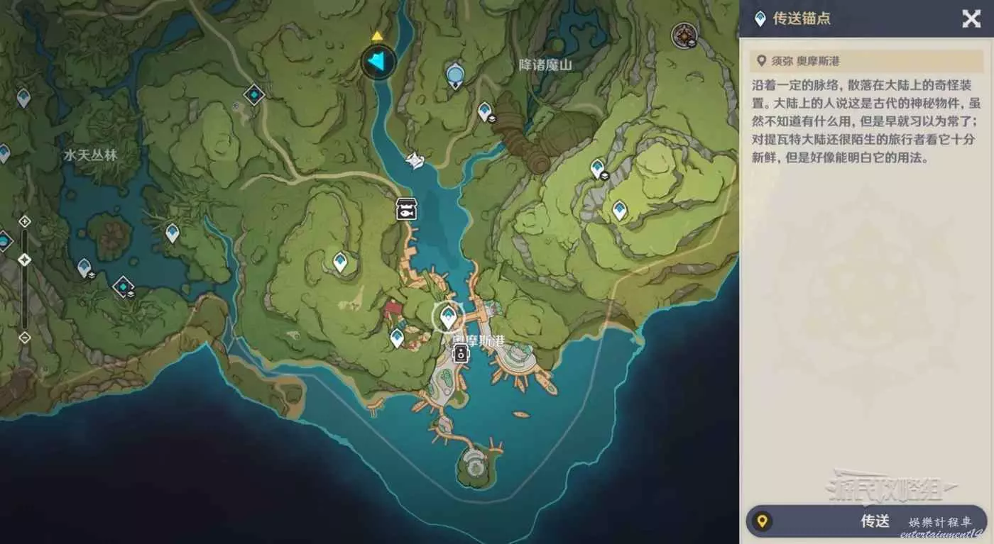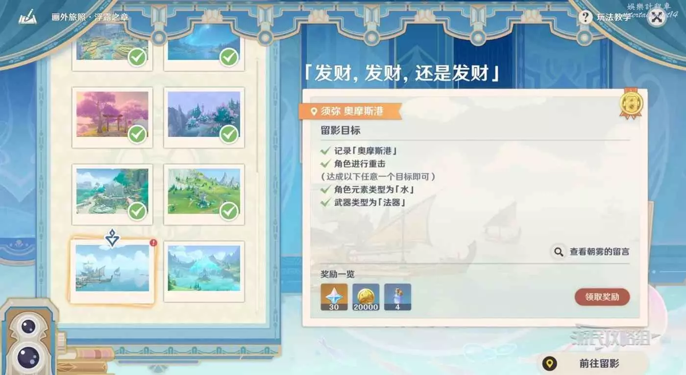 第13關的位置在須彌地圖最下方奧摩斯港,傳送到附近錨點前往留影位置即可。