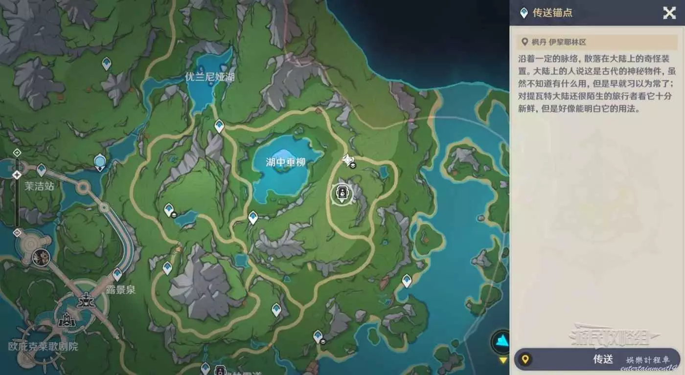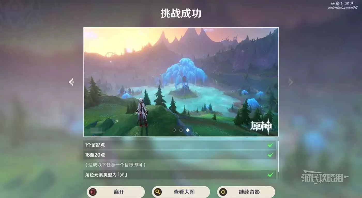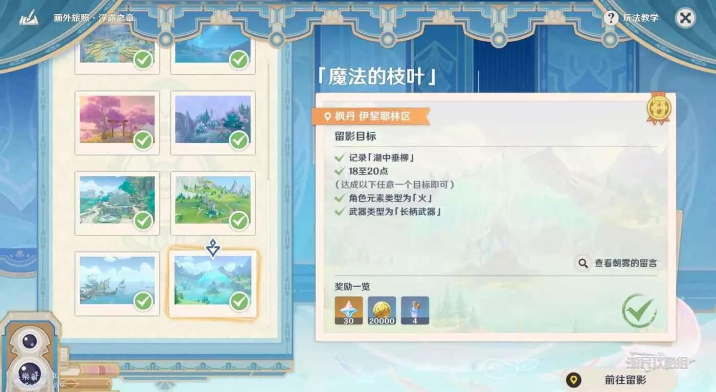 第14關的位置在楓丹伊黎耶林區湖中垂柳附近,傳送到留影所在位置的錨點即可。