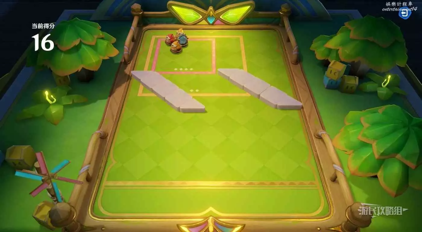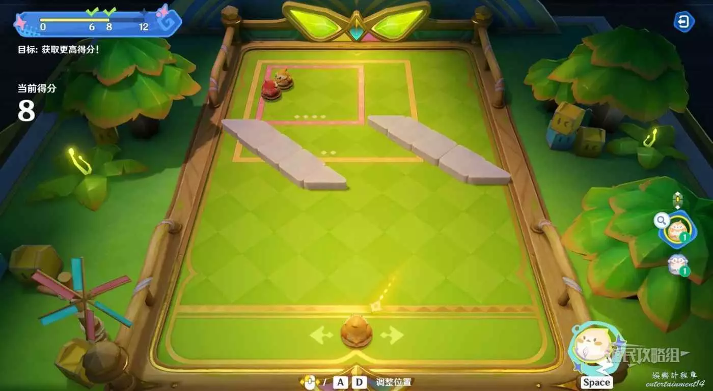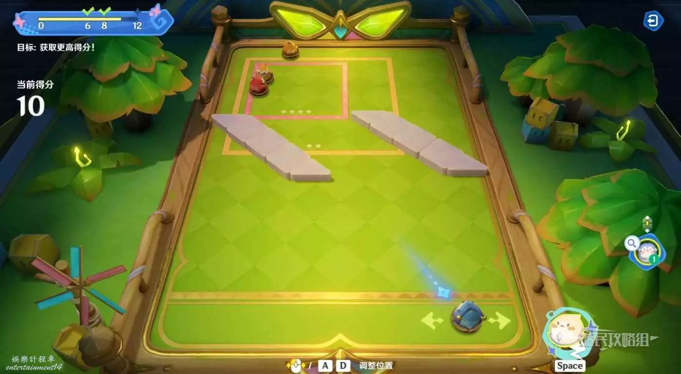 最後用普通球處理最後一個敵對球,將普通球、敵對球和得分區角落的石頭連城一條線,然後力度拉滿,將敵對球彈出得分區即可。就算沒有成功將其擊出得分區也沒有關係,此時我們已經完成所有得分目標了。