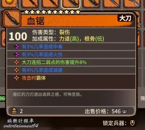橙武苗刀皎月 氣血會緩慢失去 命中敵人時根據傷害8%恢復氣血值)