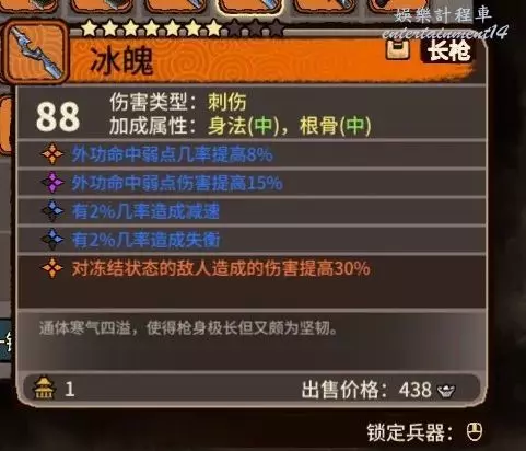 還可配上橙武長槍冰魄(特效凍結單位造成傷害+30%)及長槍(太虛槍法 冰凍技能)