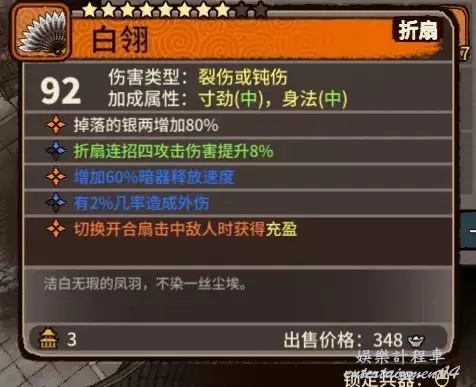 橙武摺扇赤羽刃詞條 對外傷狀態敵人造成傷害+30%