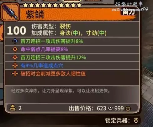 橙武苗刀紫鱗詞條:破招時會衰減更多敵人韌性值