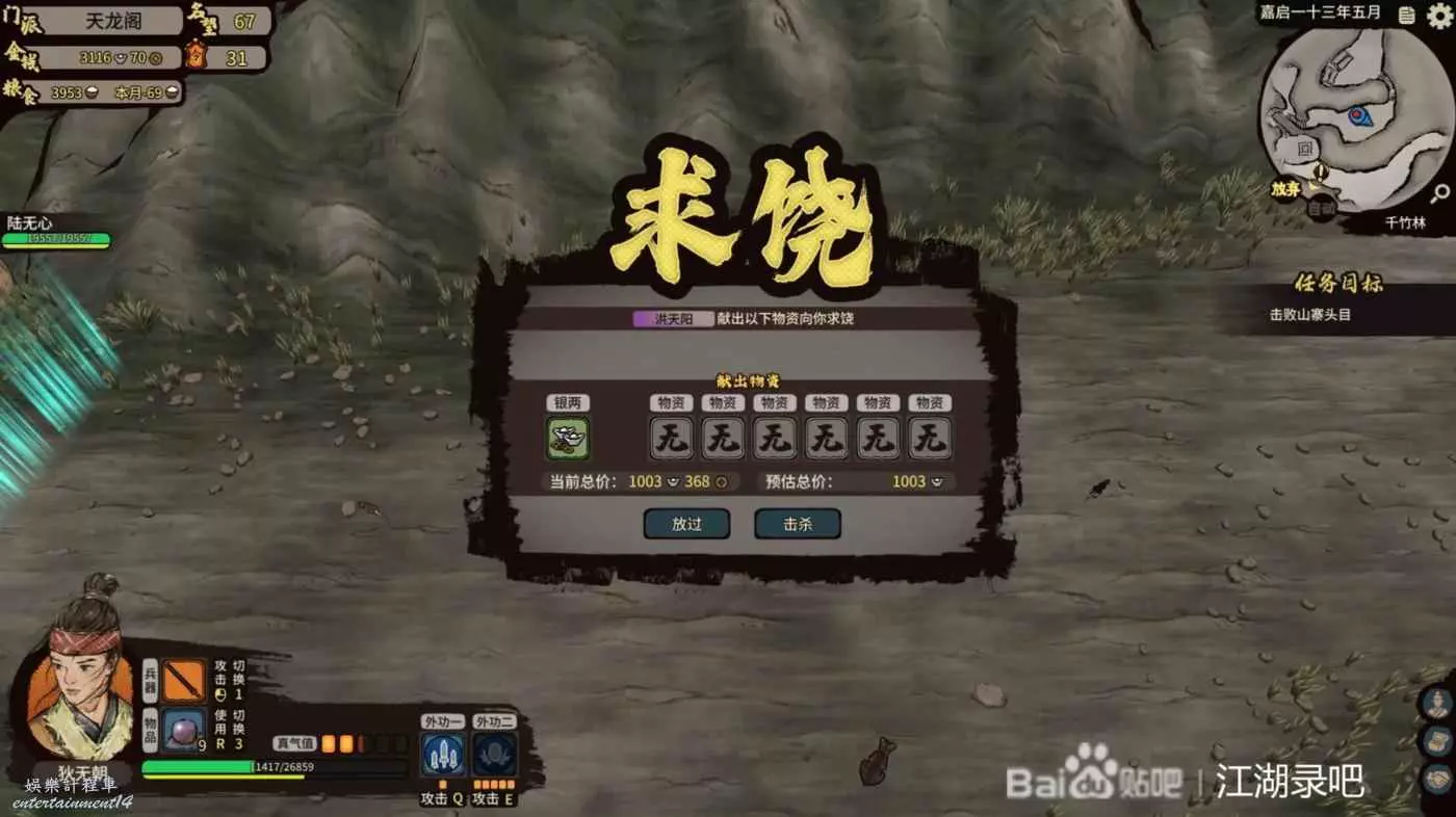 這種銀兩有點看運氣,一般武力越高獲得的銀兩越高,一般有稱號的江湖弟子求饒能獲得大量金錢