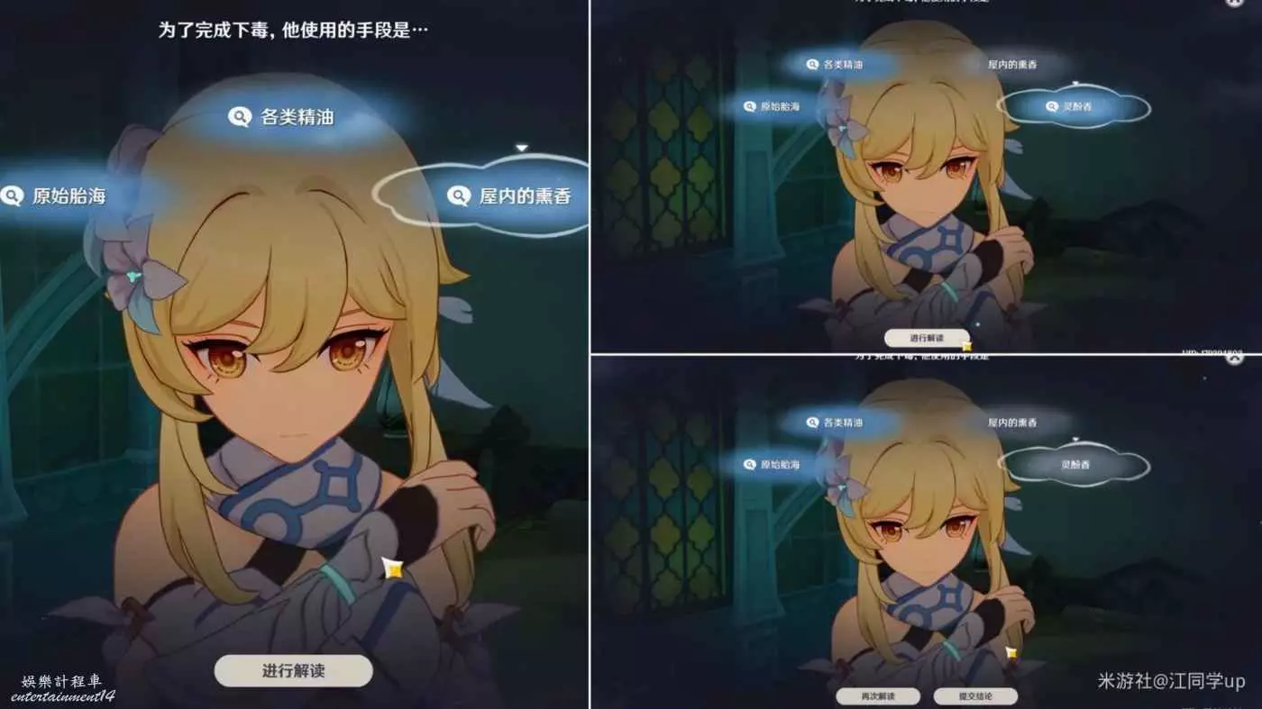 (3)第2次推理解密首先選擇【屋內的熏香】後【進行解讀】,接著繼續選擇【靈酚香】後【進行解讀】,然後【提交結論】