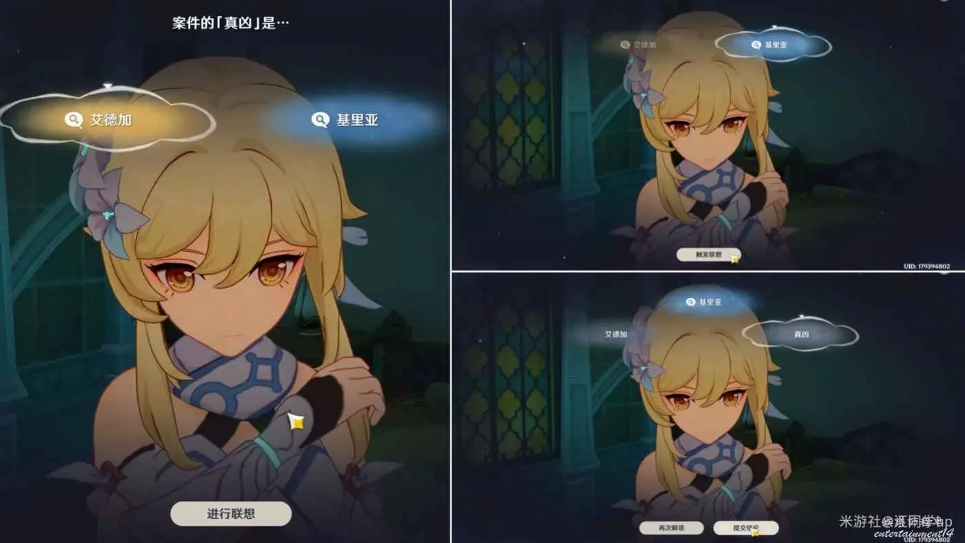 (4)第3次推理解密首先選擇【艾德加】後【進行解讀】,接著點擊【進行聯想】,接著再選擇【基裡亞】後【觸發聯想】,然後再選擇【真凶】後【進行解讀】,最後【提交結論】