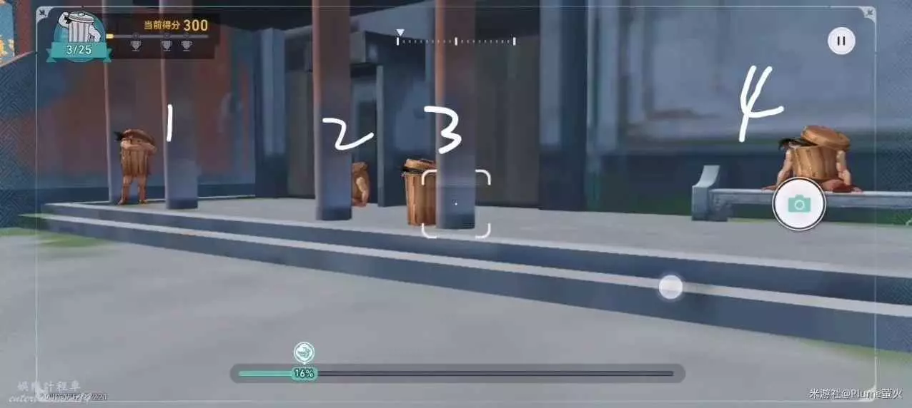 總共有25個垃圾桶,共3金12銀10銅,分別加200分(拍到特殊動作額外加100分),150分,100分
