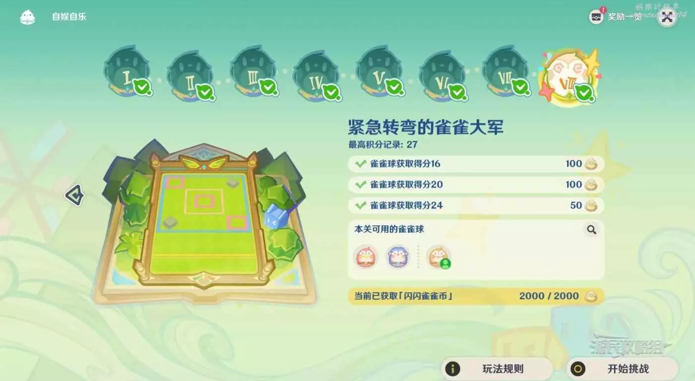 雀雀球獲取得分16/20/24