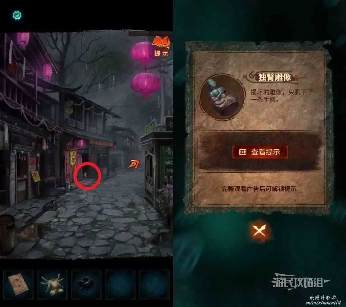 開啟陶瓷店後,點擊店門處的陶瓷,獲得【獨臂雕像】。