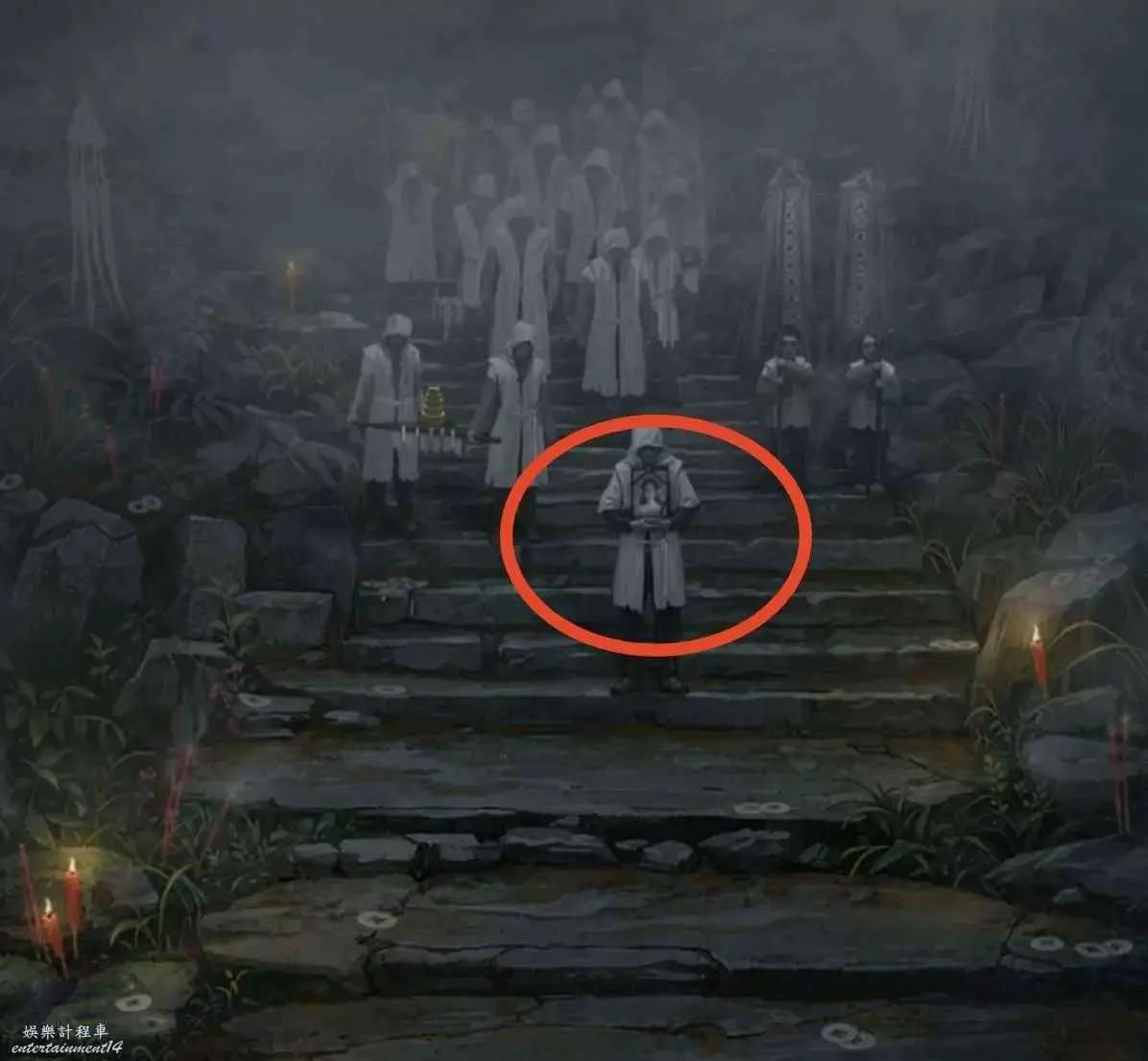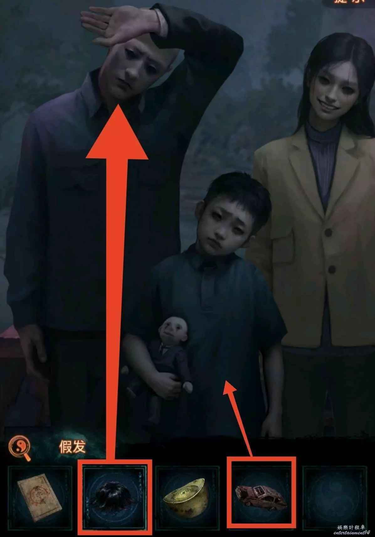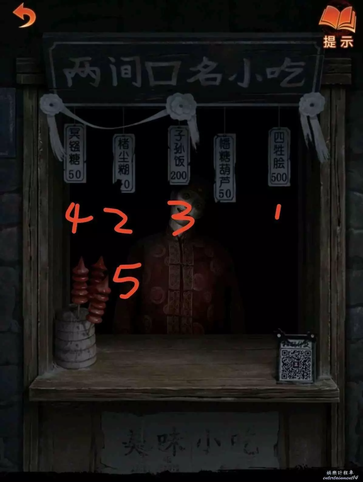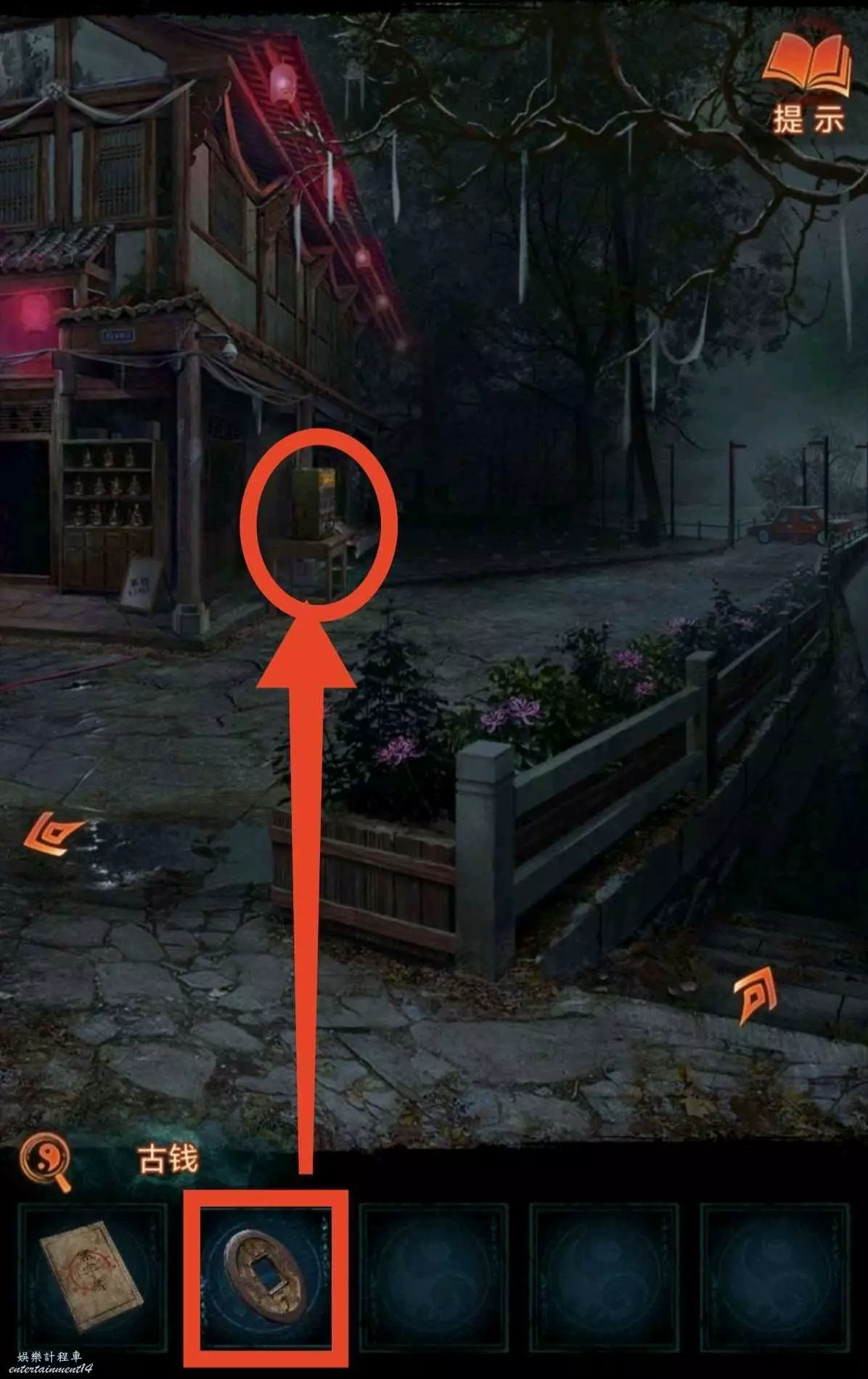 6、根據線索2,點擊紅轎子的掛玉,轎子走後顯現拿著遺照的“人”,對他說“拿來吧你”獲得紙7女主遺照,用遺照找老八換小風扇,回鎮上去報亭把紙人吹倒獲得線索3,回鬼門關找童男童女根據線索3調換字序通關。