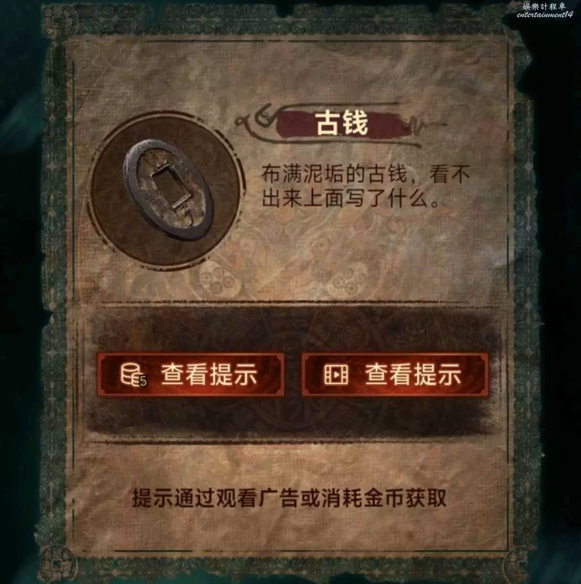 1、新手指引後,從書中獲得線索1,根據順序點擊招牌獲得楮塵糊,給隊伍裡躺著的那個,獲得硬幣一個。