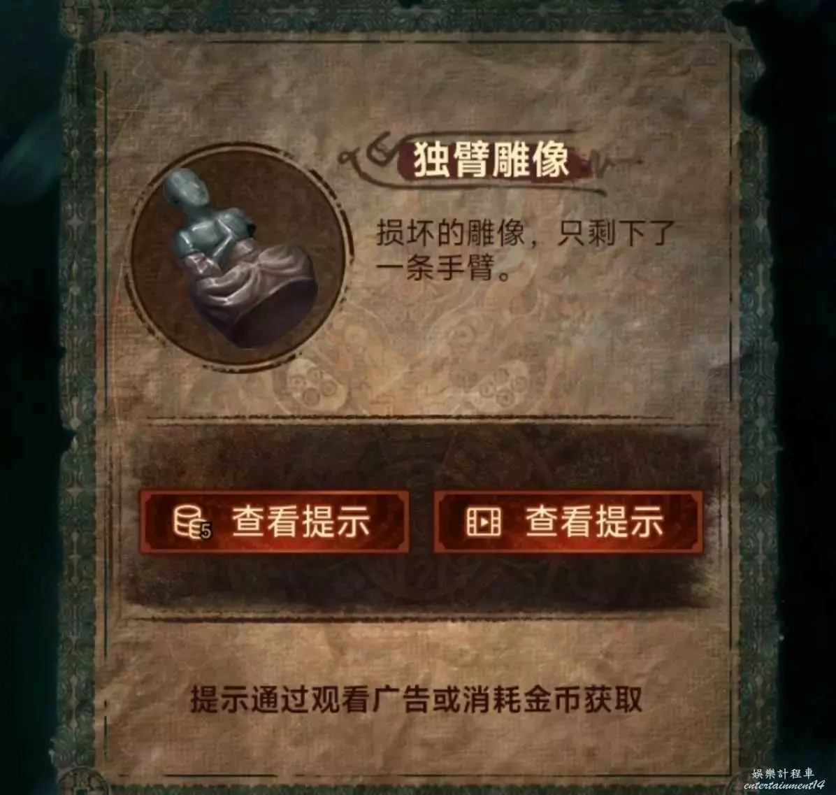 3、回鎮道,用領帶幫路邊商家修好旗子,店家為了感謝回贈雕像*1,去廣場舞隔壁查看違停小汽車,獲得電話號碼,然後把雕像放上去,按順序撥號(數位是雕像的手有幾隻),打完電話發現車主把車挪走了,為了表示歉意還留下個金元寶。