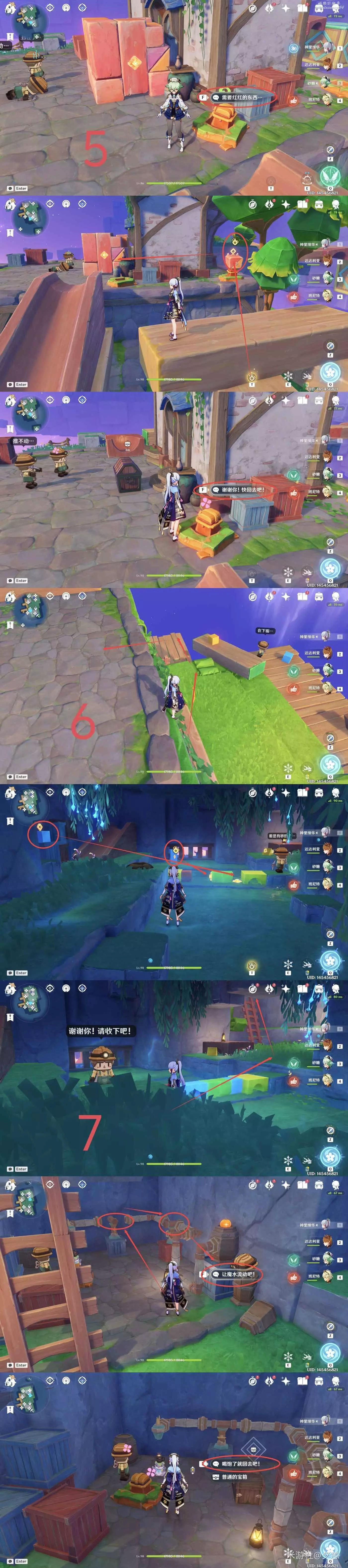 點位5,7,8的解謎後的積木鼴鼠對話解鎖點位元9的珍貴寶箱。
