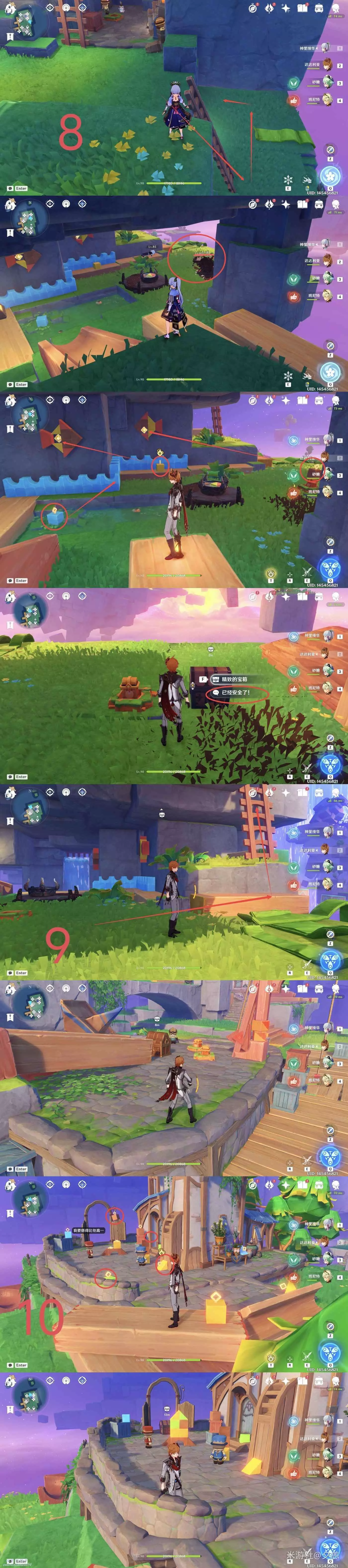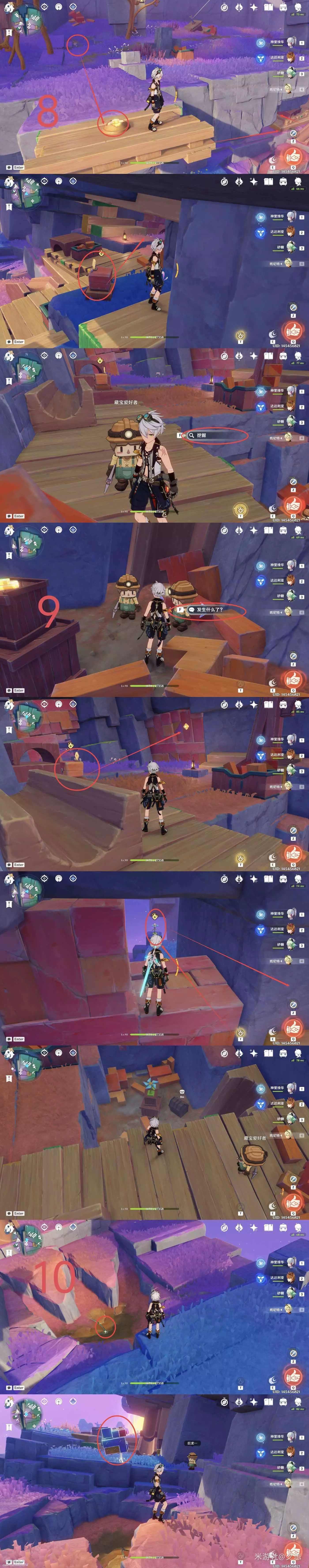 9.精緻寶箱,點位8摩拉箱旁邊的地洞,與積木小子對話,然後通過炸彈引爆礦石將外面的風車安置在指定位置獲得寶箱;