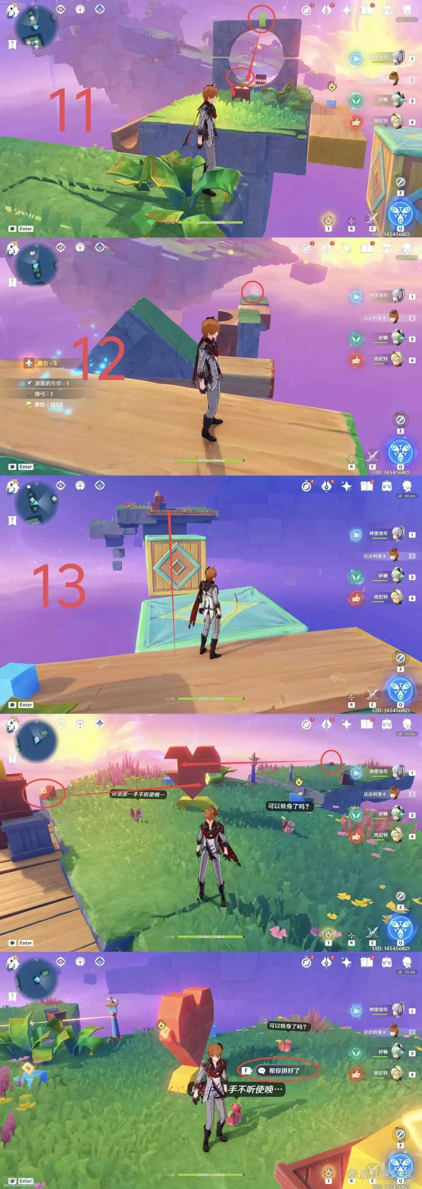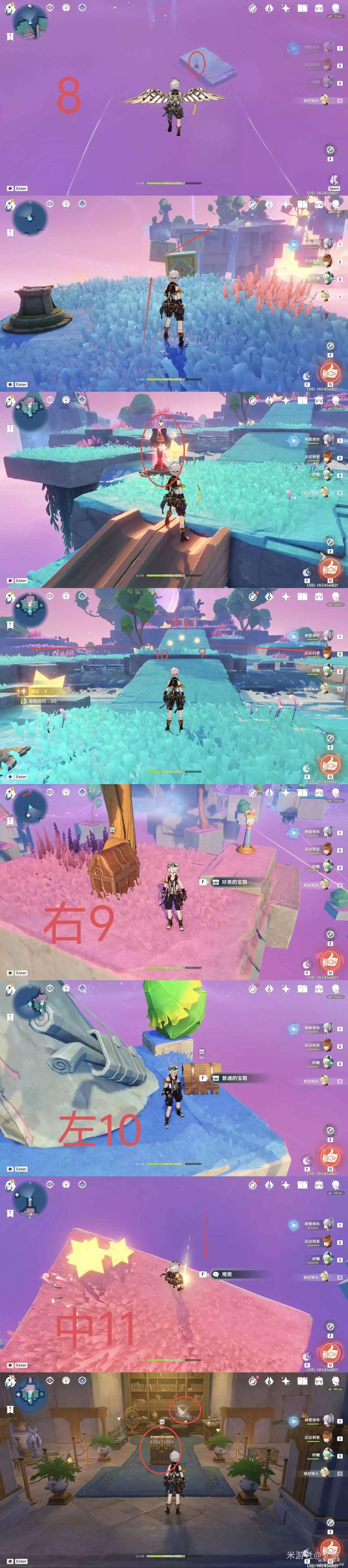 點位元9,10,11需要解鎖傳送錨點,然後跟隨三個星星獲得寶箱等,分別以右、左、中的星星位置觸碰。