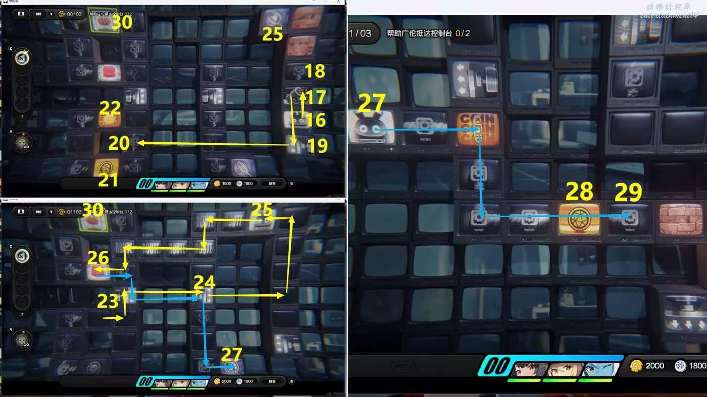 (3)接著將17區域的炸彈推到18區域後,從下面19區域彈到20區域,接著去21和22區域,接著去23-24-25-26區域,接著去23-24-27區域,然後去28區域,接著在29區域放一個炸彈後,再去左上角30區域選擇【呼喚】