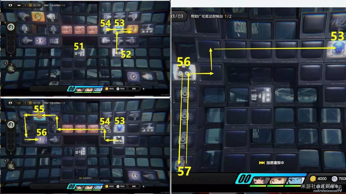 (7)接著先去53區域,接著在54區域放一個炸彈,然後在下面來回走動引爆54區域炸彈,接著去55和56區域,接著拿了57區域銀幣後再返回53區域