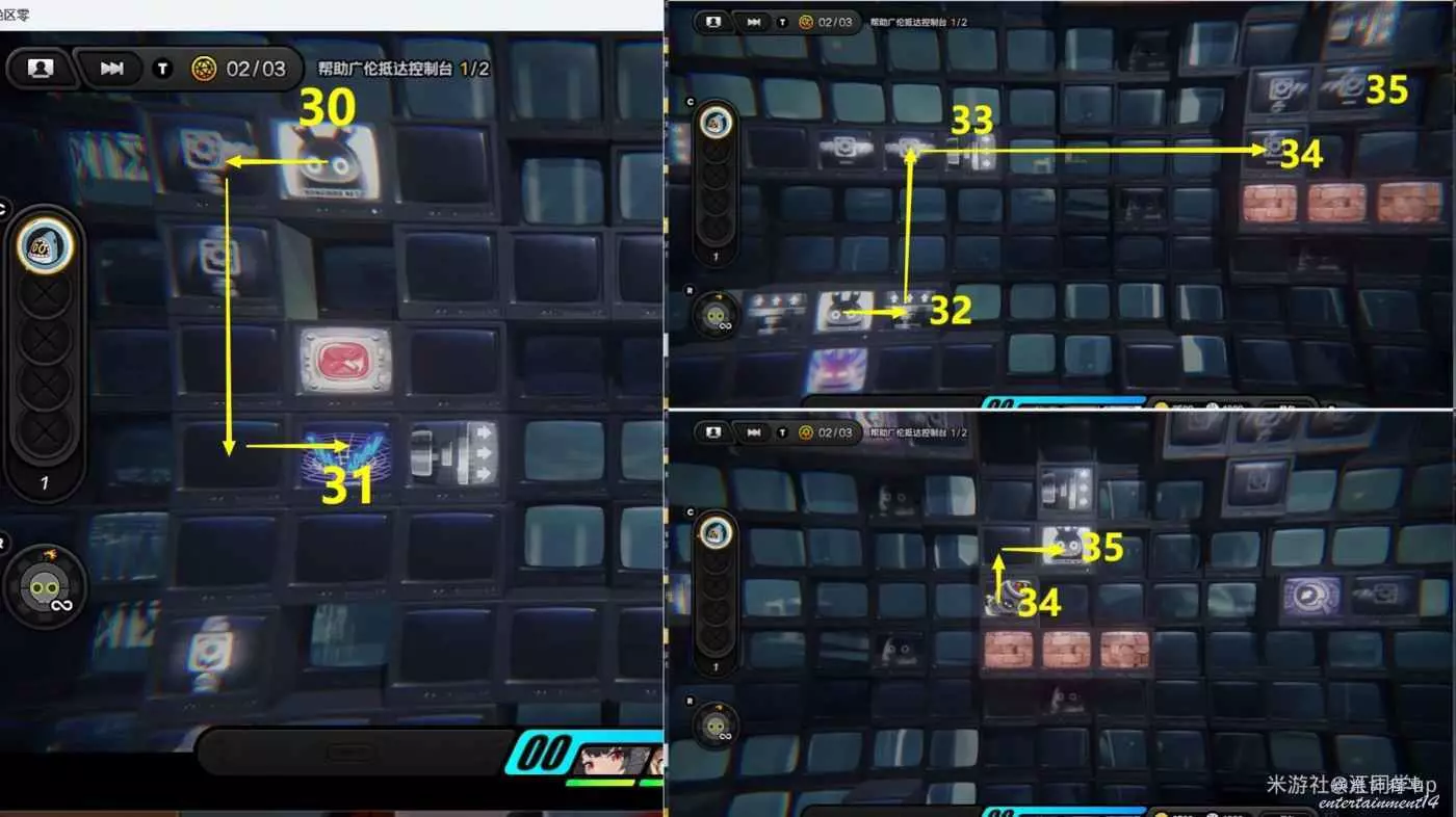 (4)接著去31區域傳輸,接著去右邊32-33-34區域,在34區域放一個炸彈,然後在上面35區域左右走引爆34區域炸彈