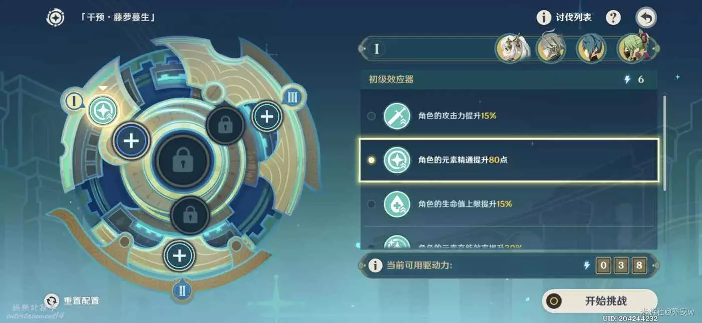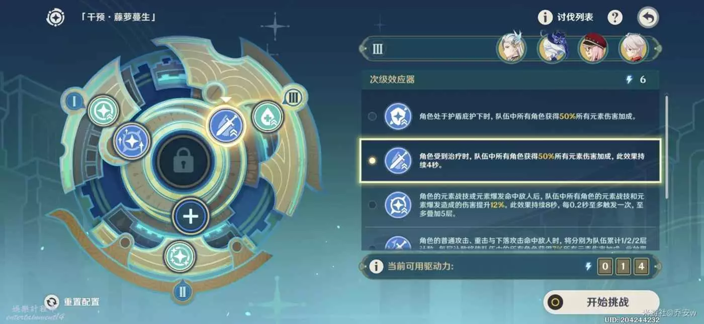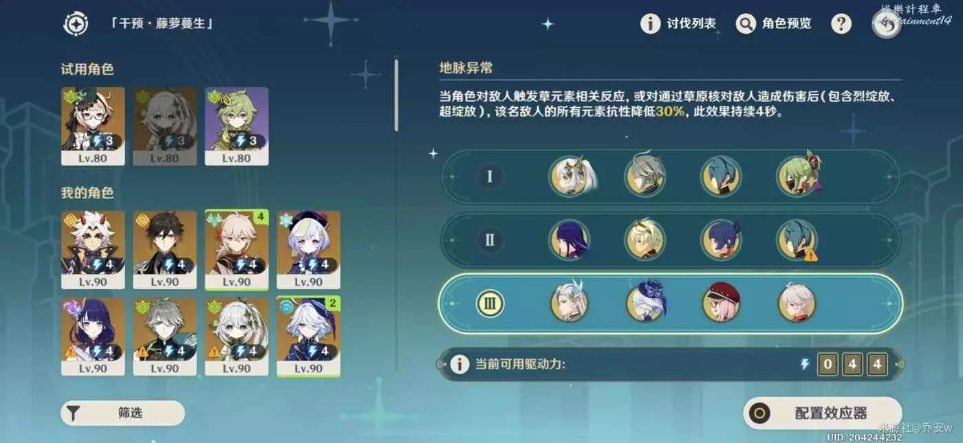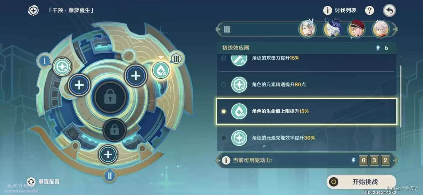 III:最後一關有楓丹機關,具有荒芒屬性攻擊的會打起來更快,所以我選了水龍隊。