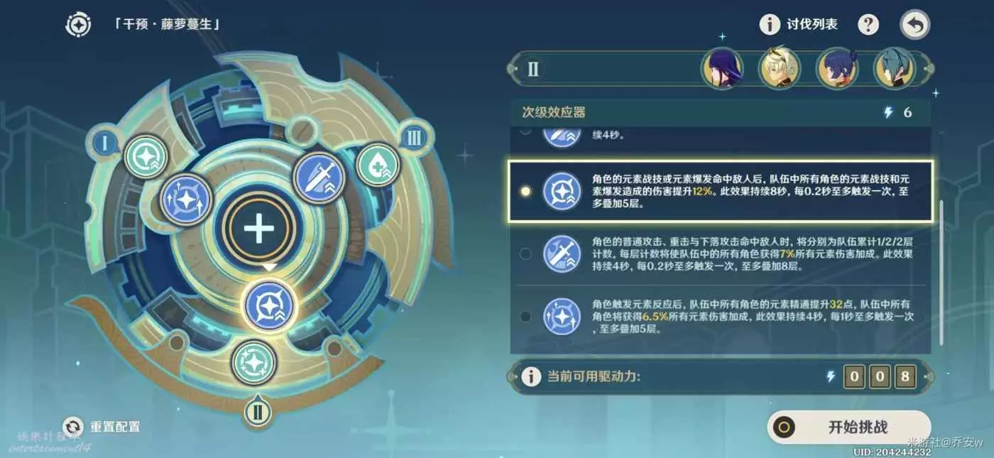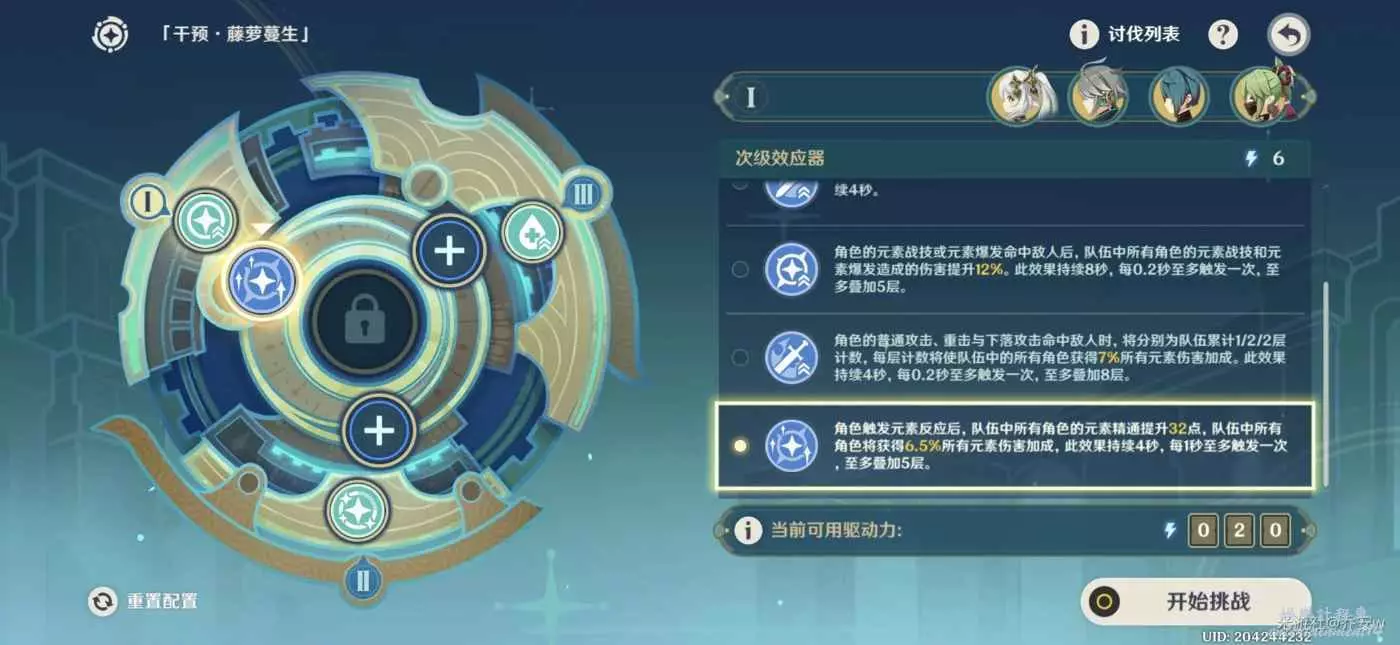 這個活動有深淵環境,第一關是草元素反應加成。那麼可以理解帶草元素角色or借助草元素怪打反應都是吃得到加成的。當然傷害足夠其實吃不吃這個加成也無大所謂(比如我就不聽)。