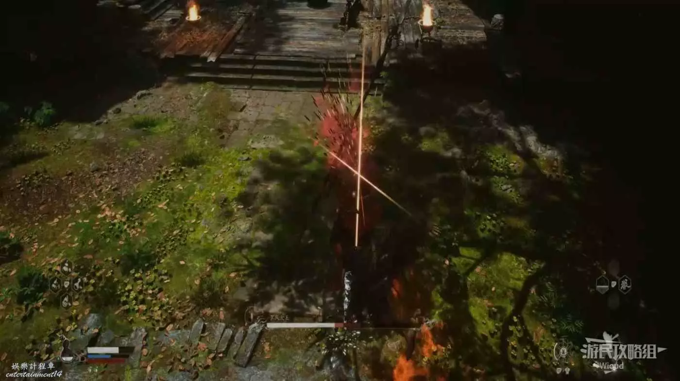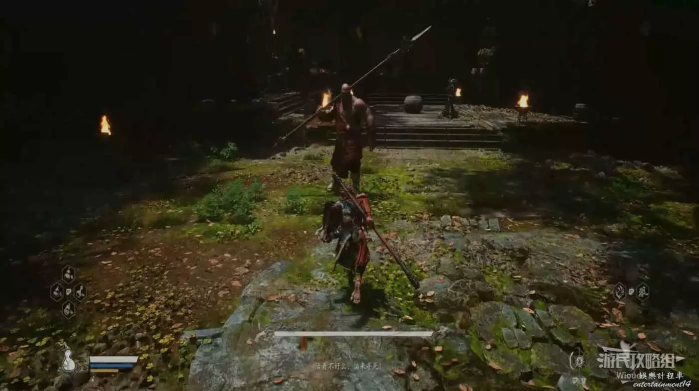 也需要注意黑風大王的人形突進招式,常常在猴子喝藥的時候使用,建議在耗掉黑風大王大半管血後再使用變形技能,通過狼形態收尾。