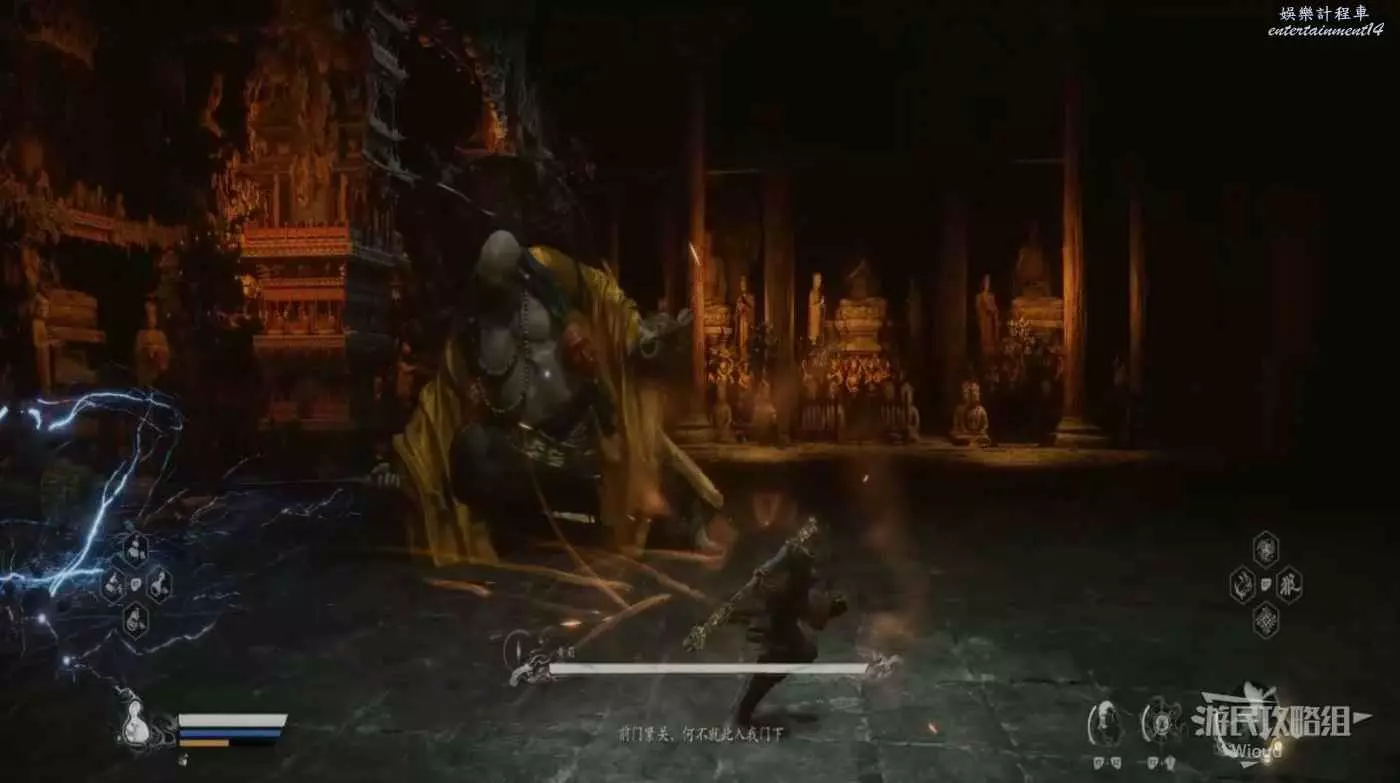 黃眉不僅有著範圍較大的近戰攻擊手段,也有大量遠端法術可用,瞬移、反制玩家法術更是手到擒來,雖然第一階段的難度偏低,但最後階段的黃眉難度高的原因便是這些優點的集中體現。