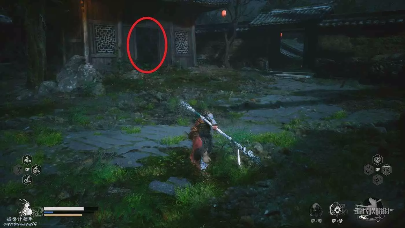 進入落花莊的大門後,往左上樓梯,這裡就是靡道人支線中靡道人所在的地方。