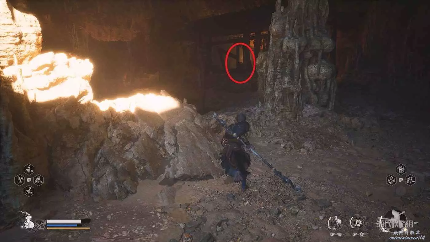 門內有一團篝火,右邊是葫蘆道士,左邊發光的罐子裡就是三冬蟲。