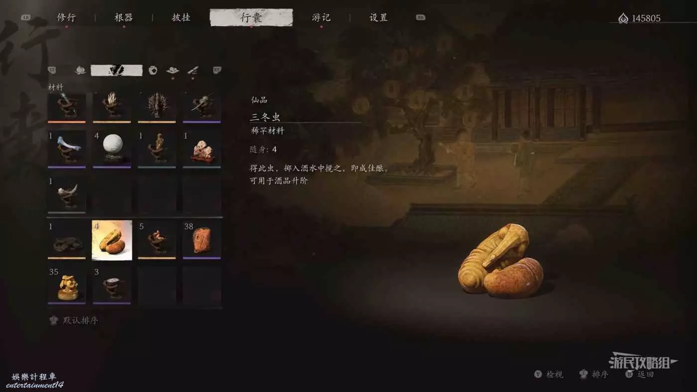 三冬蟲可以用來升級葫蘆中裝的酒。除了拾取之外,還可以從六六村中的申猴處購買獲得。