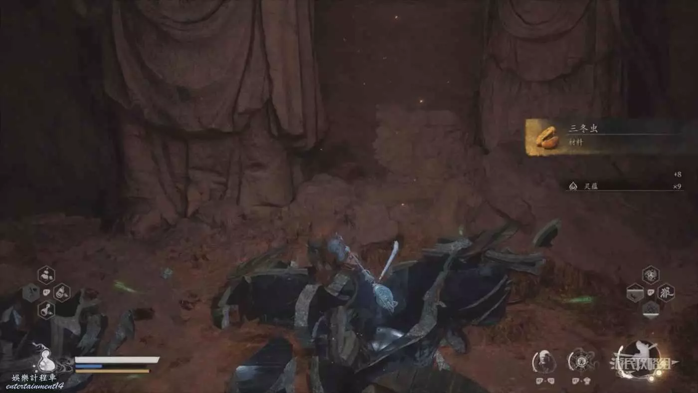 進門之後跟著樓梯往左上方走,進入下一道門,會看到葫蘆道士,觸發劇情之後。擊碎葫蘆道士旁邊發光的罐子,獲得三冬蟲。