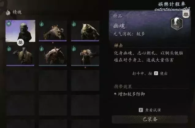 值得一提的是:妖怪法術有攜帶效果,在此我強烈推薦前期要帶的是“幽魂”,最好還可以升級,3級防禦+20,4級+24,比你的衣服(防最高的防具)加的還多。