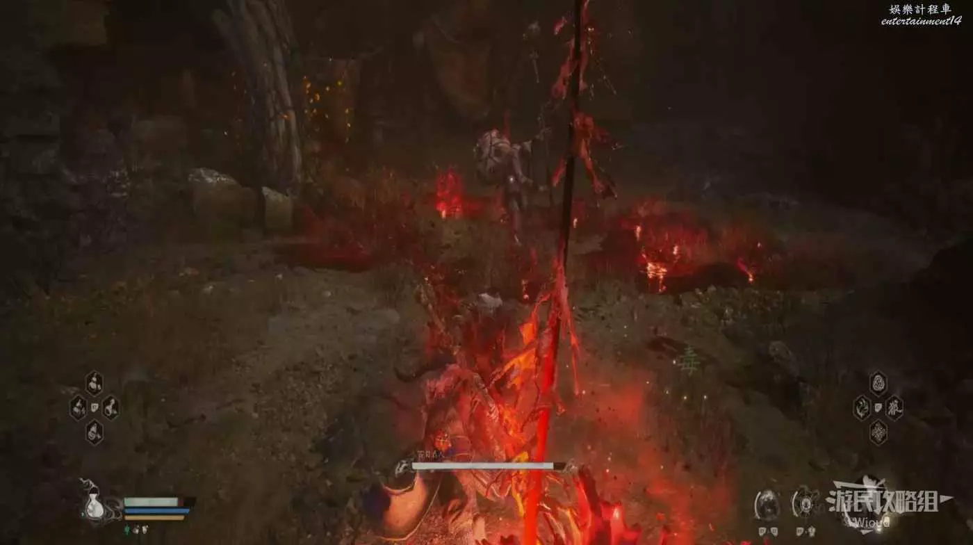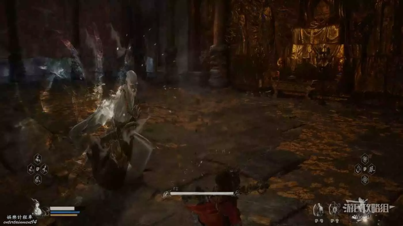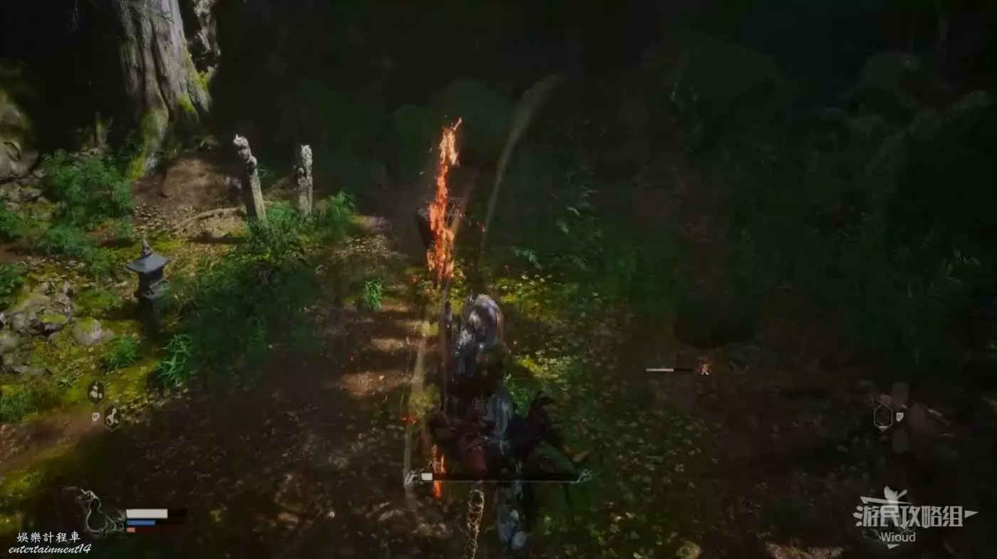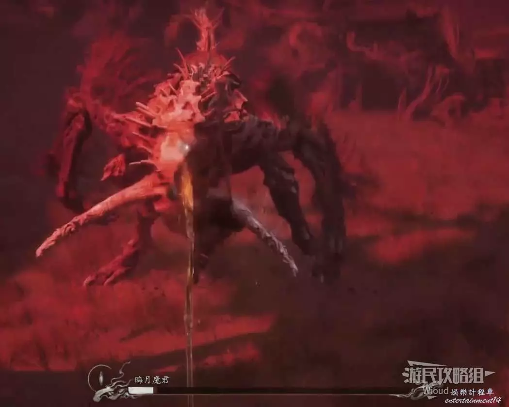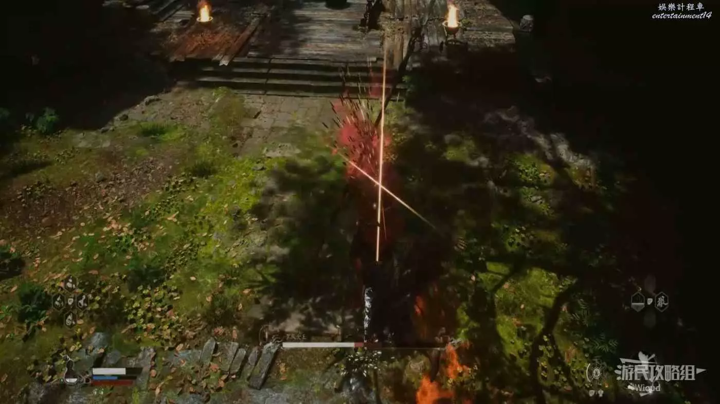 這雖然是我們遇到打的第二個BOSS,但攻擊模組與牯護院相比要敏捷許多,其使用火焰附魔雙頭劍在連招能夠夾雜火焰傷害。