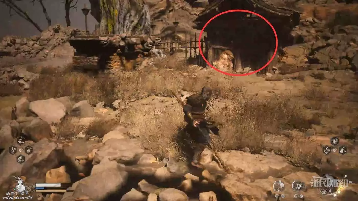 在沙門村,前往大院子找馬哥的路上,往高處走一點,發現有人躲在房子裡說話,過去和他們反覆對話,得知三王子在西天佛國。等到了下一關才能找到三王子的下落。
