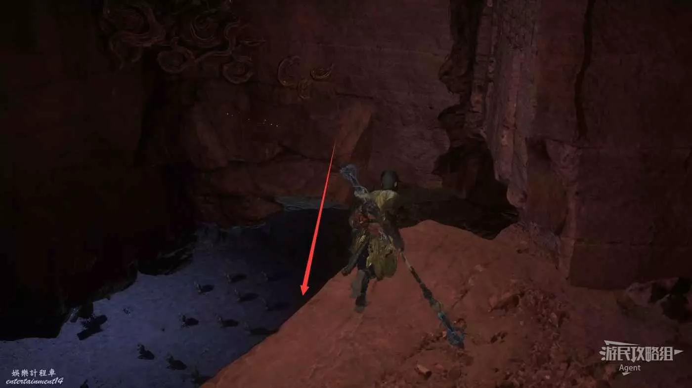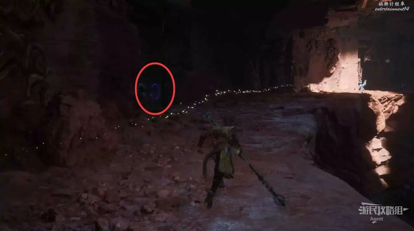 找路上樓,來到三樓“浮屠界-上層”土地廟,看到左邊下面洞裡有怪。先啟動土地廟,然後從左邊洞跳下去,先跳到中間房檐上,然後再跳到底部。