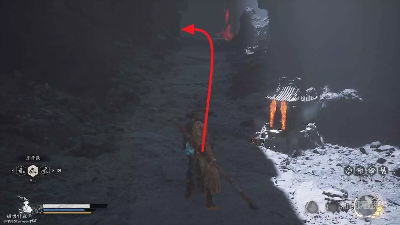 進洞沿路走到頭,有石頭攔路的地方需要跳過去,不要走旁邊的斜坡。
