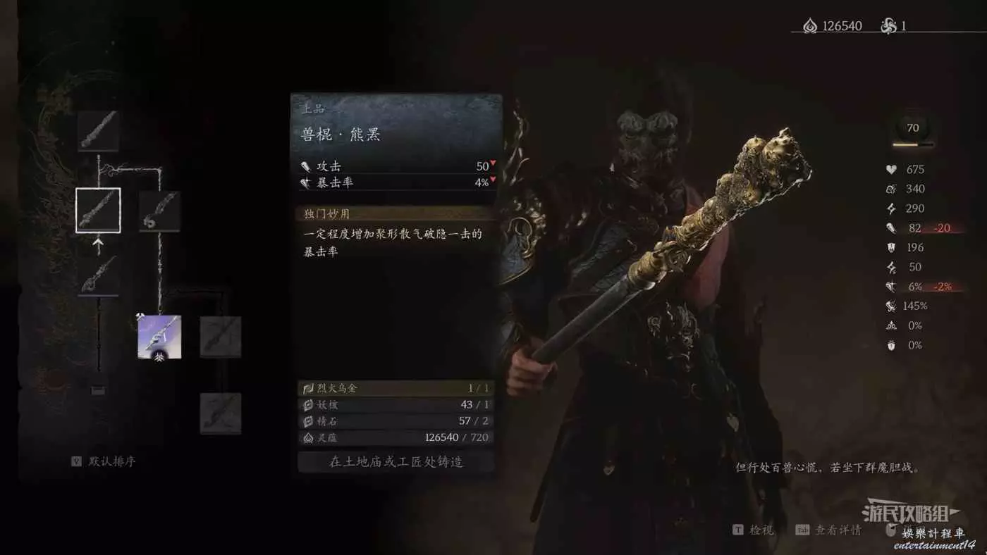 獲取方法:跟隨主線劇情擊敗第一回最終BOSS【黑熊精】後獲得材料【烈火烏金】即可解鎖鑄造。