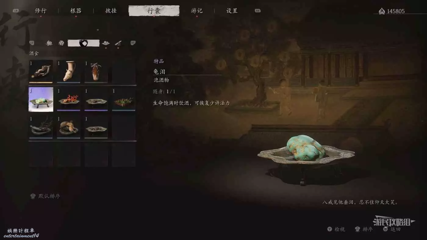 獲取方法:在第三回【浮屠界-安身寺】跟隨龜將來到苦海後,從土地廟【苦海-苦海北岸】出發,面對土地廟往右沿著海岸走,可以看到巨大的蛇骨,沿著蛇骨走到盡頭可以看到蛇頭骨,此時如果豬八戒在隊伍中,觸摸蛇頭骨會觸發與無量蝠的BOSS戰(豬八戒不在隊伍中則不會觸發戰鬥);擊敗無量蝠後觸發劇情,返回土地廟旁邊龜將眼淚掉落的位置即可拾取【龜淚】(目前版本如果拾取龜淚時豬八戒不在隊伍中,則遊記中的龜將詞條不會解鎖)。